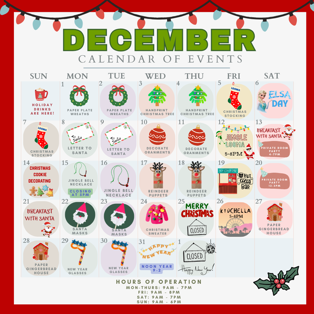 Free class provided by LOOMA. Everyday will be different and will be announced the day of. Classes include disco day, bubble day, sensory play, etc.